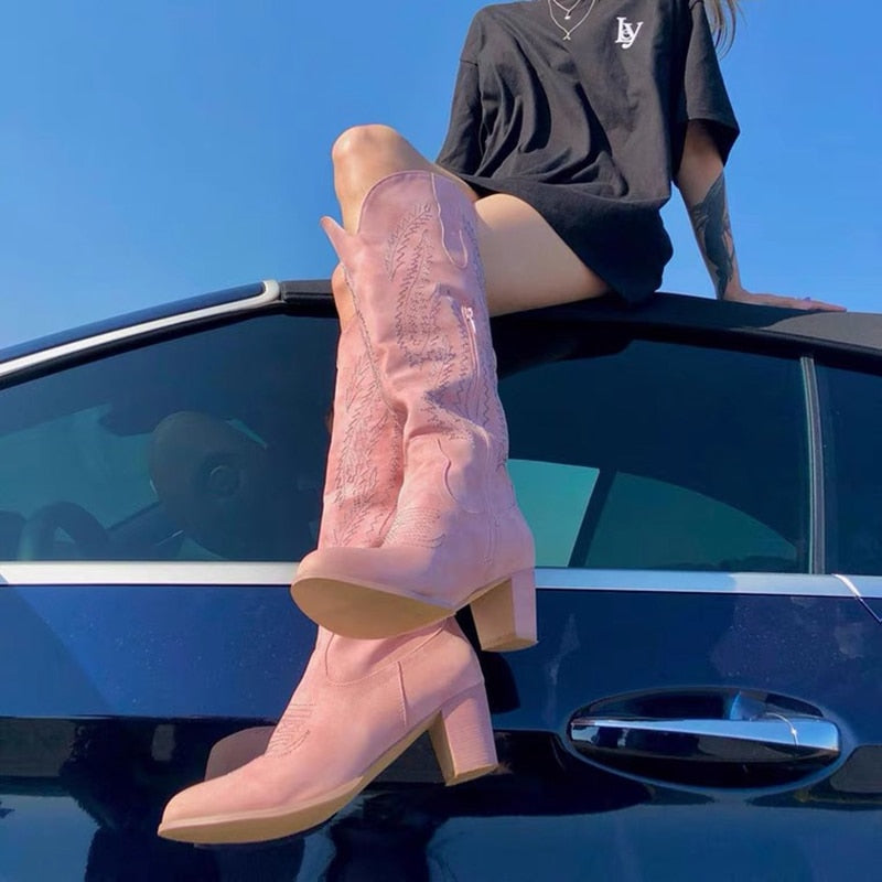 Locomotive Autumn and Winter Pointed Toe High-top Knight Boots
