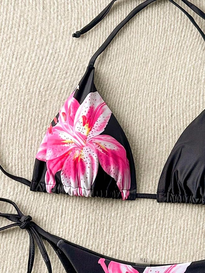 ✔ Elegant & Edgy: The classic black base paired with a vibrant pink floral print gives this bikini a timeless yet bold appeal.