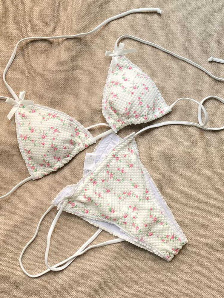 Crafted with care, these bikinis are made from a blend of polyester and spandex, ensuring a soft and stretchy feel against your skin. The solid, floral print, bordered, create a captivating visual appeal, allowing you to express your unique style under water.