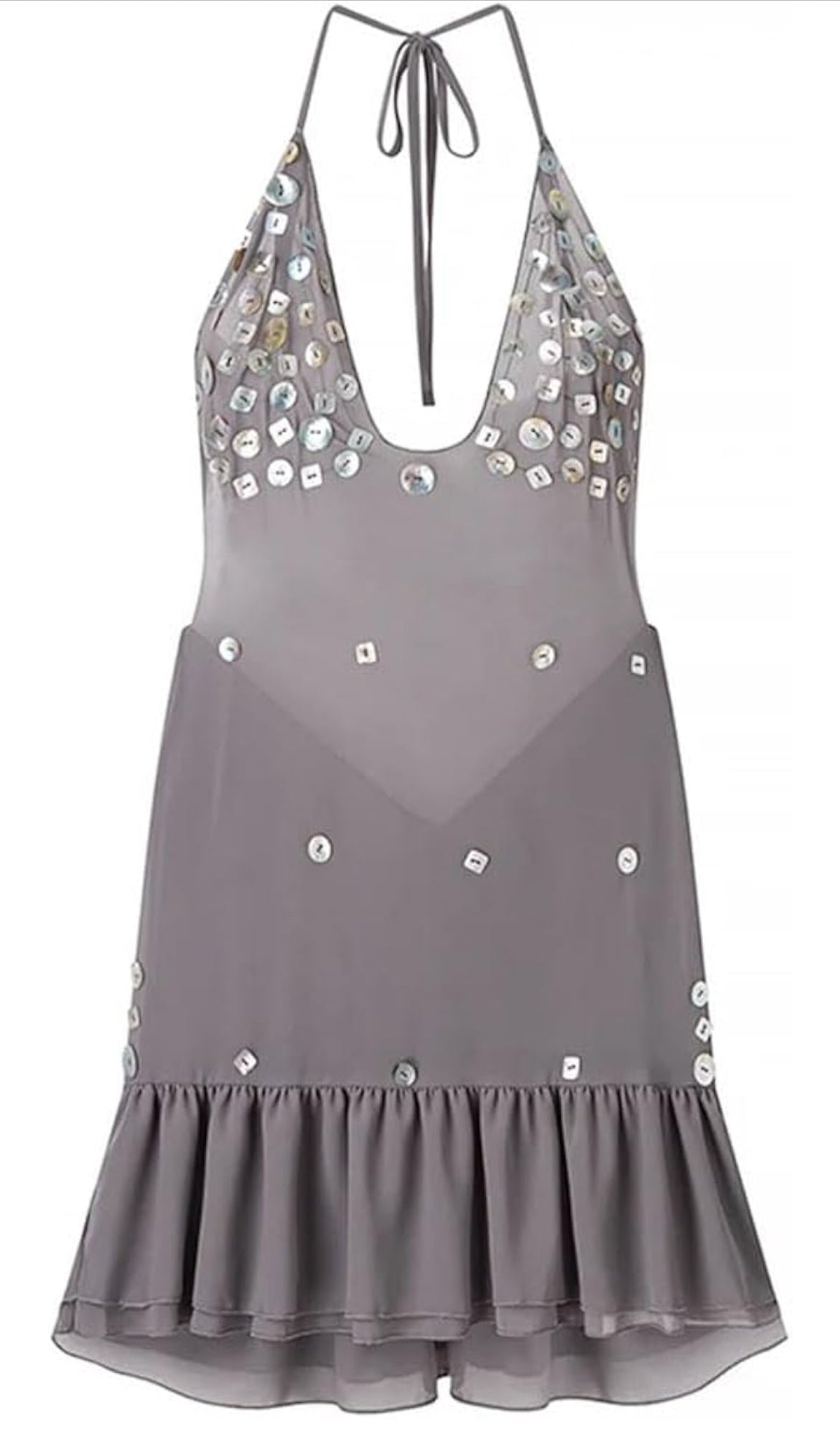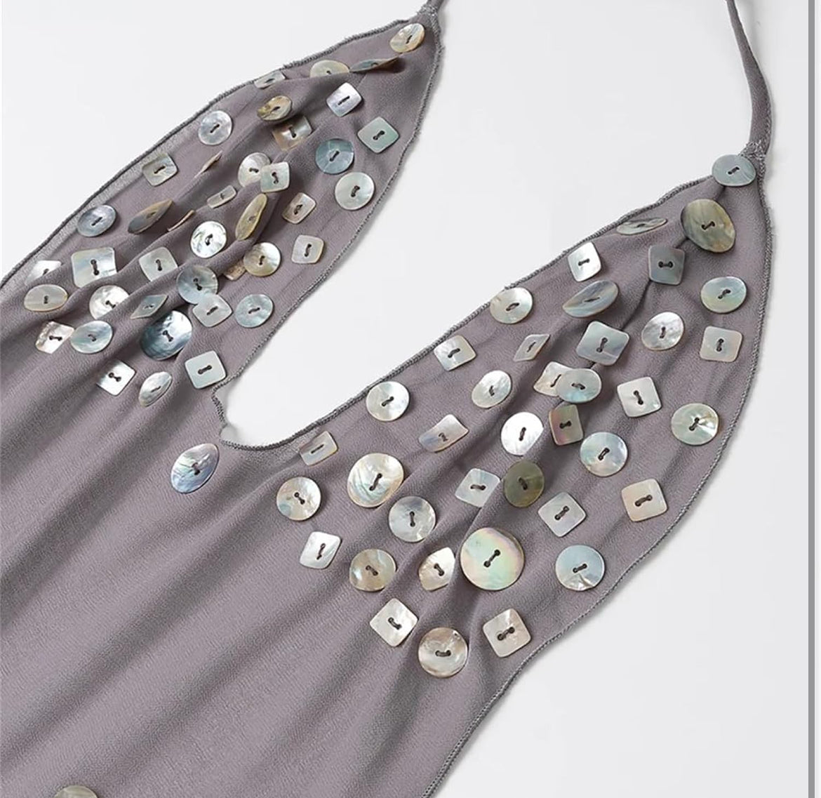 • Styling Tips: The halter-style A-line silhouette highlights your curves with just the right amount of sparkle. Pair it with strappy heels, your go-to mini bag, and bold hoops for a night out, or layer with a sheer cover-up and sandals for beachside chic.